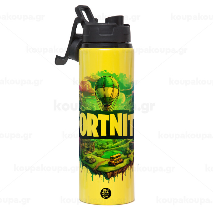 Fortnite land, Μεταλλικό παγούρι νερού με καπάκι ασφαλείας, αλουμινίου 850ml