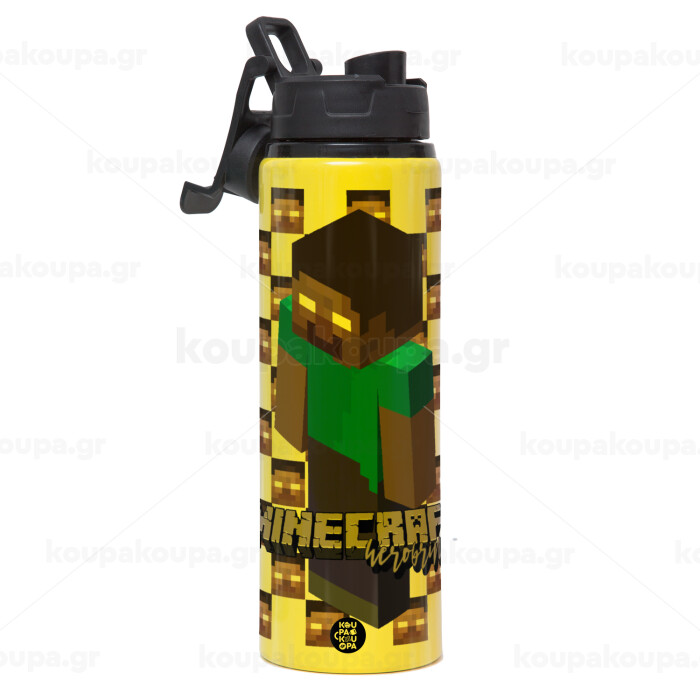 Minecraft herobrine, Μεταλλικό παγούρι νερού με καπάκι ασφαλείας, αλουμινίου 850ml