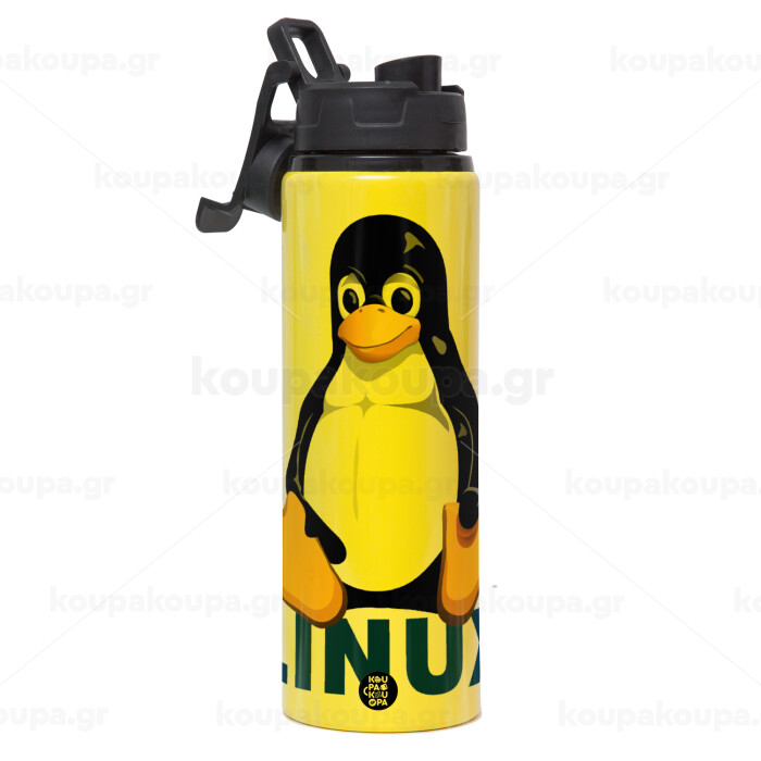 Linux, Μεταλλικό παγούρι νερού με καπάκι ασφαλείας, αλουμινίου 850ml