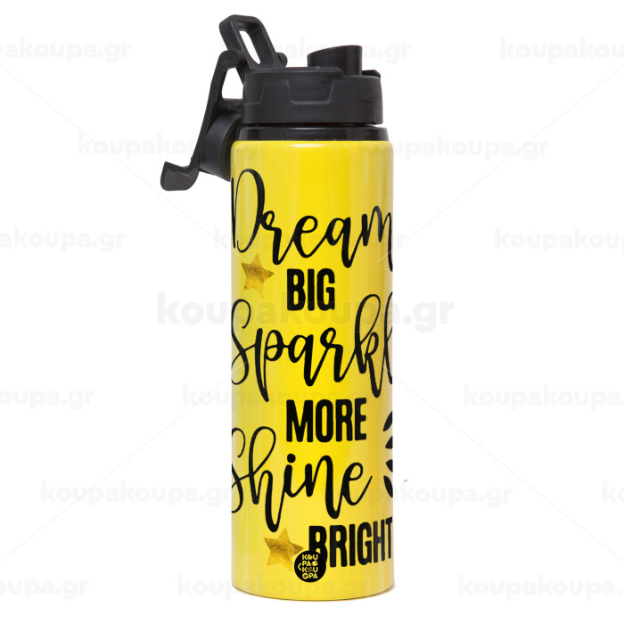 Dream big, Sparkle more, Shine bright, Μεταλλικό παγούρι νερού με καπάκι ασφαλείας, αλουμινίου 850ml