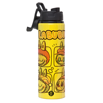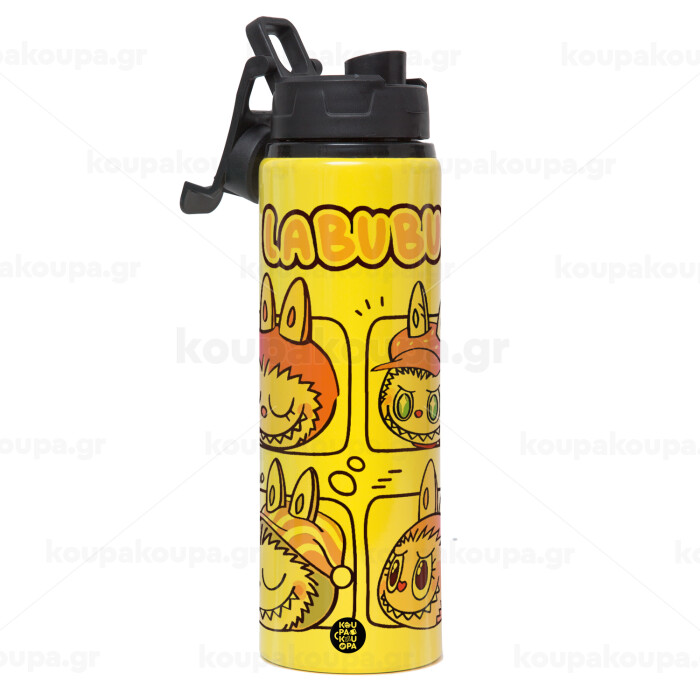 Labubu pink, Μεταλλικό παγούρι νερού με καπάκι ασφαλείας, αλουμινίου 850ml