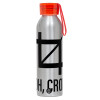 Oh Crop, Αλουμινένιο Αθλητικό Μπουκάλι 650ml – Ασημί με Κόκκινο Καπάκι και Λουράκι Σιλικόνης