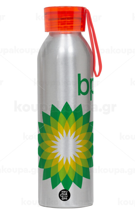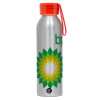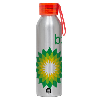 Πρατήριο καυσίμων BP, Αλουμινένιο Αθλητικό Μπουκάλι 650ml – Ασημί με Κόκκινο Καπάκι και Λουράκι Σιλικόνης