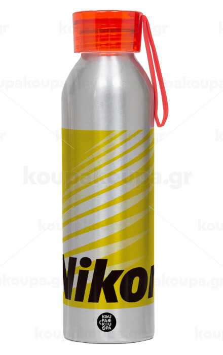 Nikon, Αλουμινένιο Αθλητικό Μπουκάλι 650ml – Ασημί με Κόκκινο Καπάκι και Λουράκι Σιλικόνης