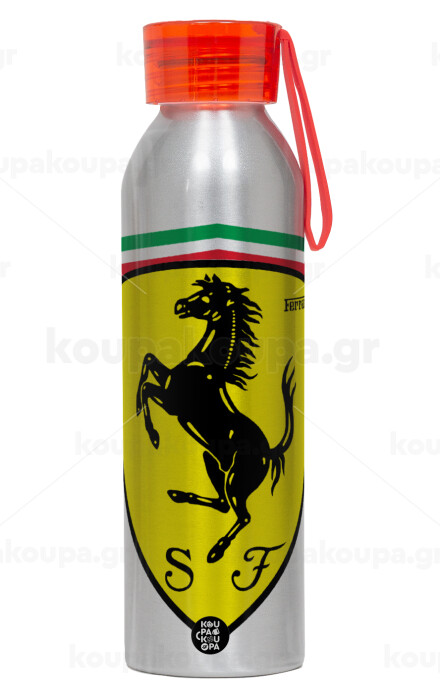Ferrari, Αλουμινένιο Αθλητικό Μπουκάλι 650ml – Ασημί με Κόκκινο Καπάκι και Λουράκι Σιλικόνης