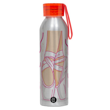 Πουεντ, Αλουμινένιο Αθλητικό Μπουκάλι 650ml – Ασημί με Κόκκινο Καπάκι και Λουράκι Σιλικόνης