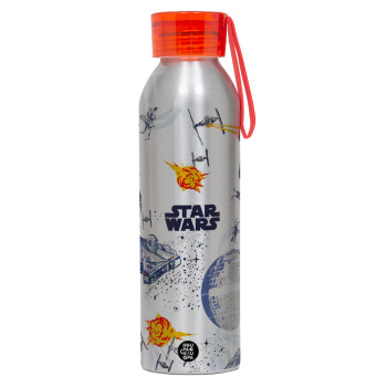 Ο πόλεμος των άστρων, Αλουμινένιο Αθλητικό Μπουκάλι 650ml – Ασημί με Κόκκινο Καπάκι και Λουράκι Σιλικόνης