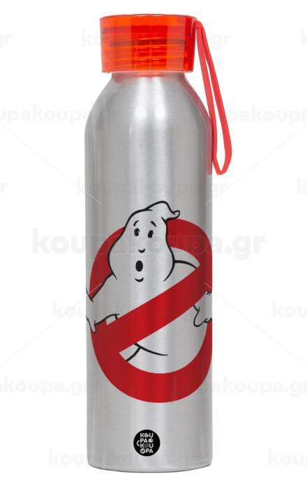 The Ghostbusters, Αλουμινένιο Αθλητικό Μπουκάλι 650ml – Ασημί με Κόκκινο Καπάκι και Λουράκι Σιλικόνης