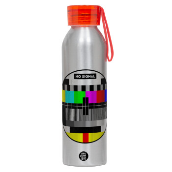 No signal, Αλουμινένιο Αθλητικό Μπουκάλι 650ml – Ασημί με Κόκκινο Καπάκι και Λουράκι Σιλικόνης