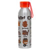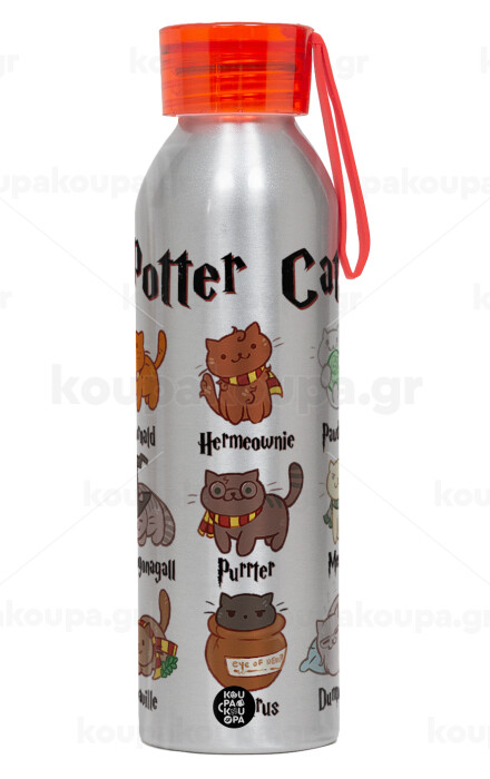 Potter Cats, Αλουμινένιο Αθλητικό Μπουκάλι 650ml – Ασημί με Κόκκινο Καπάκι και Λουράκι Σιλικόνης