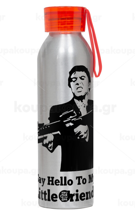 Scarface, Αλουμινένιο Αθλητικό Μπουκάλι 650ml – Ασημί με Κόκκινο Καπάκι και Λουράκι Σιλικόνης
