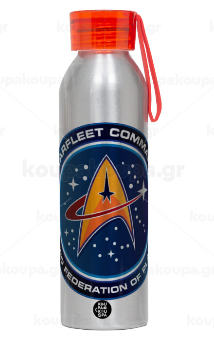 Starfleet command, Αλουμινένιο Αθλητικό Μπουκάλι 650ml – Ασημί με Κόκκινο Καπάκι και Λουράκι Σιλικόνης