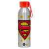 Superman Blue, Αλουμινένιο Αθλητικό Μπουκάλι 650ml – Ασημί με Κόκκινο Καπάκι και Λουράκι Σιλικόνης