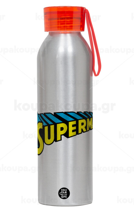 Superman vintage, Αλουμινένιο Αθλητικό Μπουκάλι 650ml – Ασημί με Κόκκινο Καπάκι και Λουράκι Σιλικόνης