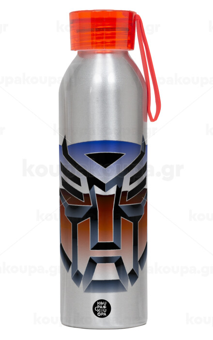 Transformers, Αλουμινένιο Αθλητικό Μπουκάλι 650ml – Ασημί με Κόκκινο Καπάκι και Λουράκι Σιλικόνης