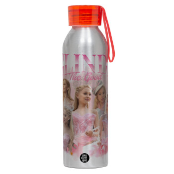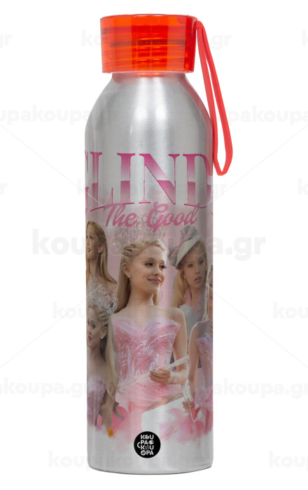 Wicked Glinda, Αλουμινένιο Αθλητικό Μπουκάλι 650ml – Ασημί με Κόκκινο Καπάκι και Λουράκι Σιλικόνης