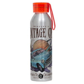 Wizard Flying Car, Αλουμινένιο Αθλητικό Μπουκάλι 650ml – Ασημί με Κόκκινο Καπάκι και Λουράκι Σιλικόνης