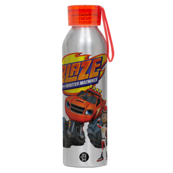 Ο Μπλέιζ και οι Φίλοι του, Αλουμινένιο Αθλητικό Μπουκάλι 650ml – Ασημί με Κόκκινο Καπάκι και Λουράκι Σιλικόνης