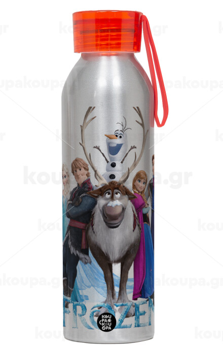 Frozen, Αλουμινένιο Αθλητικό Μπουκάλι 650ml – Ασημί με Κόκκινο Καπάκι και Λουράκι Σιλικόνης