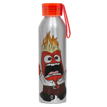 Inside Out θυμός, Αλουμινένιο Αθλητικό Μπουκάλι 650ml – Ασημί με Κόκκινο Καπάκι και Λουράκι Σιλικόνης