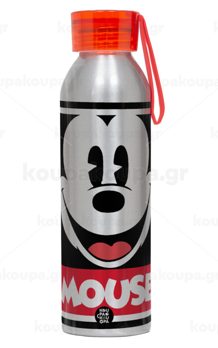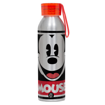 Μίκυ Μάους, Αλουμινένιο Αθλητικό Μπουκάλι 650ml – Ασημί με Κόκκινο Καπάκι και Λουράκι Σιλικόνης