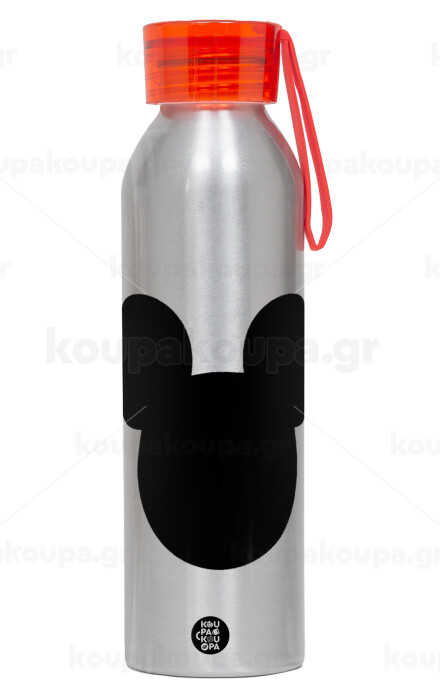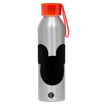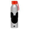 mouse man, Αλουμινένιο Αθλητικό Μπουκάλι 650ml – Ασημί με Κόκκινο Καπάκι και Λουράκι Σιλικόνης