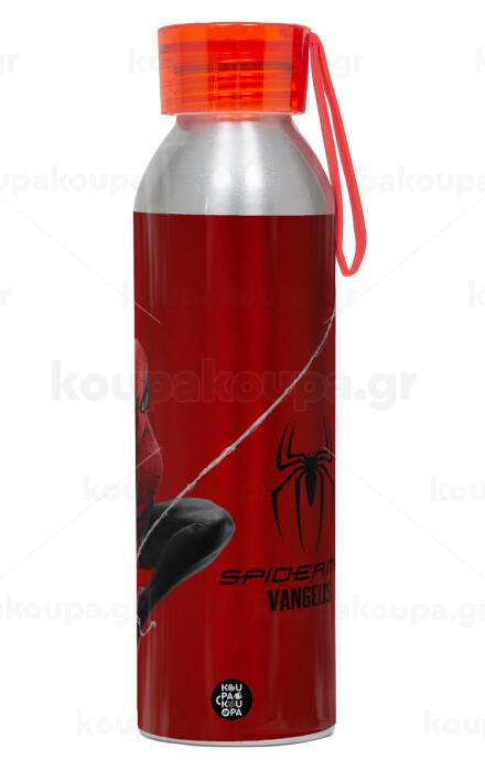 Spiderman, Αλουμινένιο Αθλητικό Μπουκάλι 650ml – Ασημί με Κόκκινο Καπάκι και Λουράκι Σιλικόνης