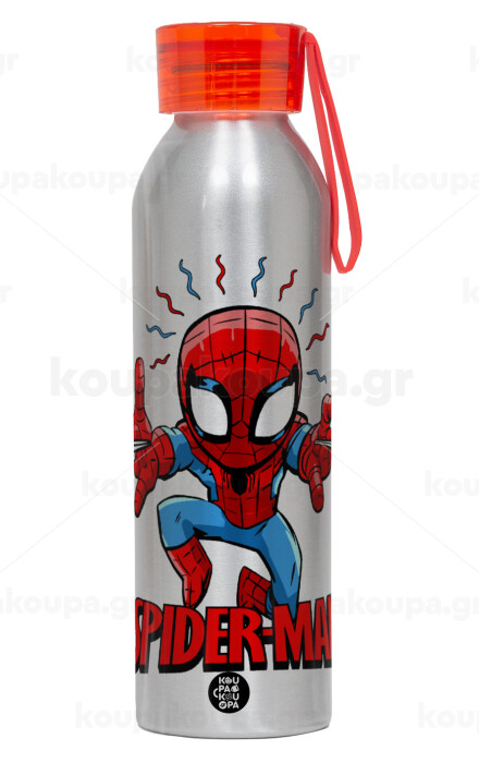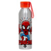 Spiderman flying, Αλουμινένιο Αθλητικό Μπουκάλι 650ml – Ασημί με Κόκκινο Καπάκι και Λουράκι Σιλικόνης