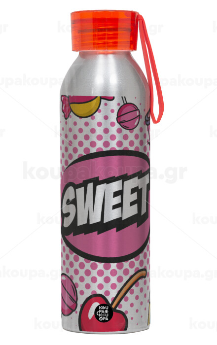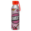SWEET, Αλουμινένιο Αθλητικό Μπουκάλι 650ml – Ασημί με Κόκκινο Καπάκι και Λουράκι Σιλικόνης