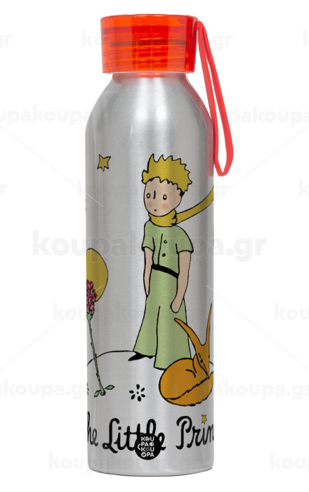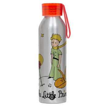 Ο μικρός πρίγκιπας classic, Αλουμινένιο Αθλητικό Μπουκάλι 650ml – Ασημί με Κόκκινο Καπάκι και Λουράκι Σιλικόνης