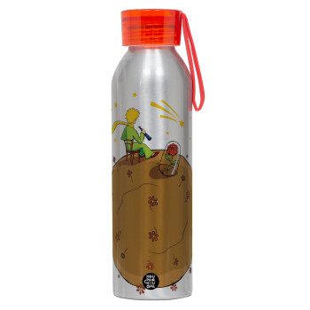 Ο μικρός πρίγκιπας planet, Αλουμινένιο Αθλητικό Μπουκάλι 650ml – Ασημί με Κόκκινο Καπάκι και Λουράκι Σιλικόνης