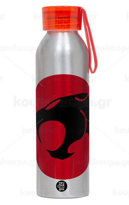 Thundercats, Αλουμινένιο Αθλητικό Μπουκάλι 650ml – Ασημί με Κόκκινο Καπάκι και Λουράκι Σιλικόνης