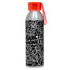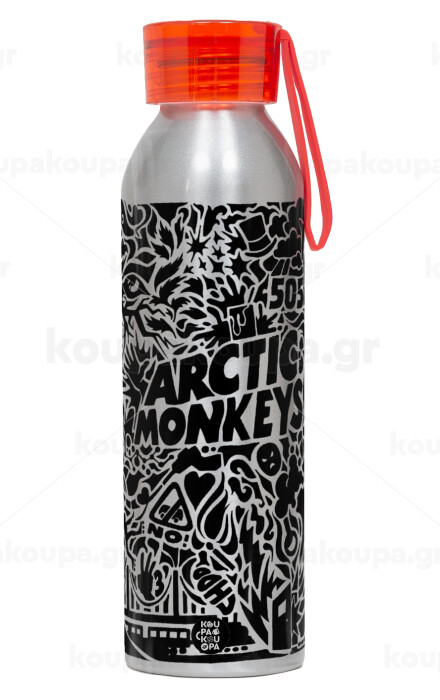 Arctic Monkeys, Αλουμινένιο Αθλητικό Μπουκάλι 650ml – Ασημί με Κόκκινο Καπάκι και Λουράκι Σιλικόνης