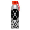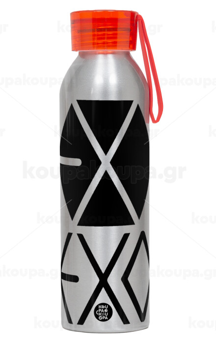 EXO Band korea, Αλουμινένιο Αθλητικό Μπουκάλι 650ml – Ασημί με Κόκκινο Καπάκι και Λουράκι Σιλικόνης