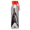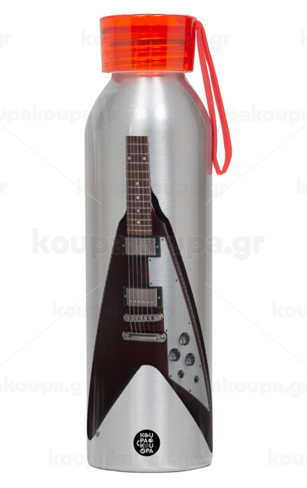 Guitar flying V, Αλουμινένιο Αθλητικό Μπουκάλι 650ml – Ασημί με Κόκκινο Καπάκι και Λουράκι Σιλικόνης