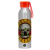 Guns N' Roses, Αλουμινένιο Αθλητικό Μπουκάλι 650ml – Ασημί με Κόκκινο Καπάκι και Λουράκι Σιλικόνης