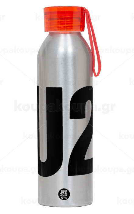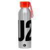 U2 , Αλουμινένιο Αθλητικό Μπουκάλι 650ml – Ασημί με Κόκκινο Καπάκι και Λουράκι Σιλικόνης