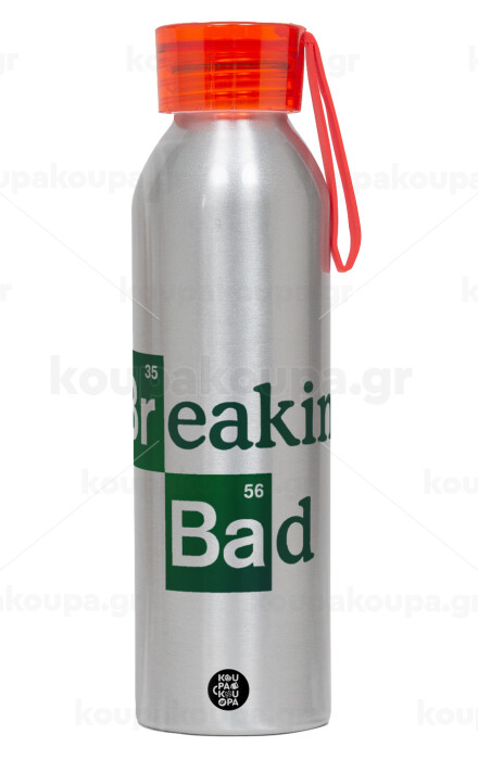 Breaking Bad, Αλουμινένιο Αθλητικό Μπουκάλι 650ml – Ασημί με Κόκκινο Καπάκι και Λουράκι Σιλικόνης