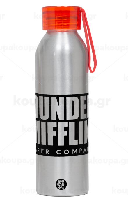 Dunder Mifflin, Inc Paper Company, Αλουμινένιο Αθλητικό Μπουκάλι 650ml – Ασημί με Κόκκινο Καπάκι και Λουράκι Σιλικόνης