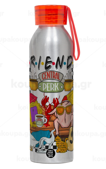 Τα φιλαράκια, Αλουμινένιο Αθλητικό Μπουκάλι 650ml – Ασημί με Κόκκινο Καπάκι και Λουράκι Σιλικόνης