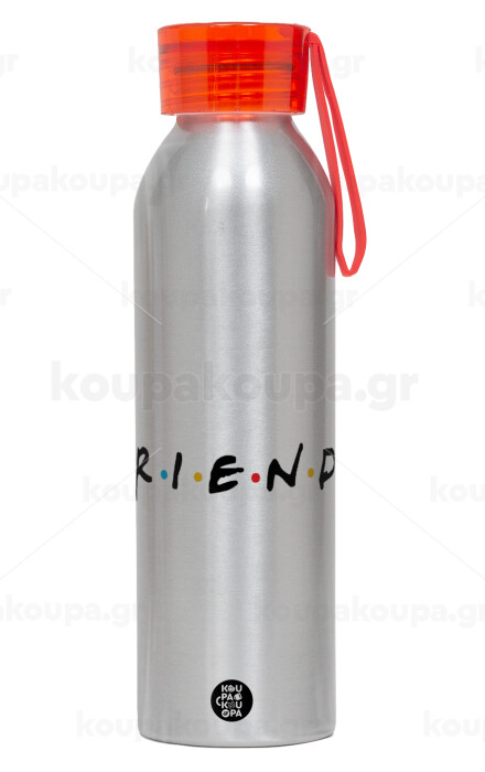 Friends, Αλουμινένιο Αθλητικό Μπουκάλι 650ml – Ασημί με Κόκκινο Καπάκι και Λουράκι Σιλικόνης