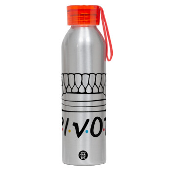 Friends Pivot, Αλουμινένιο Αθλητικό Μπουκάλι 650ml – Ασημί με Κόκκινο Καπάκι και Λουράκι Σιλικόνης