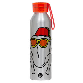 Friends turkey, Αλουμινένιο Αθλητικό Μπουκάλι 650ml – Ασημί με Κόκκινο Καπάκι και Λουράκι Σιλικόνης