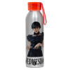 Wednesday Adams, dance with hands, Αλουμινένιο Αθλητικό Μπουκάλι 650ml – Ασημί με Κόκκινο Καπάκι και Λουράκι Σιλικόνης