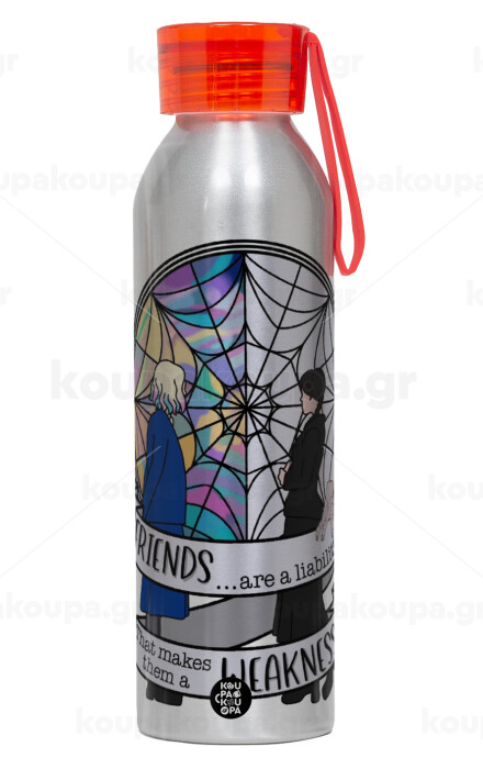 Wednesday window, Αλουμινένιο Αθλητικό Μπουκάλι 650ml – Ασημί με Κόκκινο Καπάκι και Λουράκι Σιλικόνης
