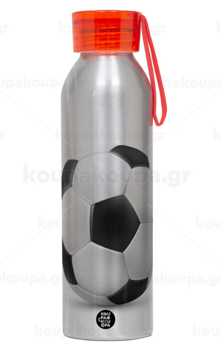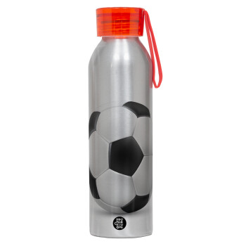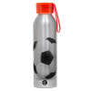 Μπάλα ποδοσφαίρου, Αλουμινένιο Αθλητικό Μπουκάλι 650ml – Ασημί με Κόκκινο Καπάκι και Λουράκι Σιλικόνης