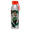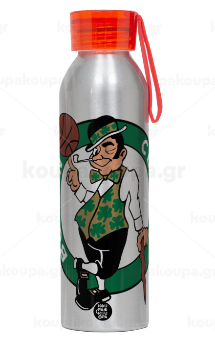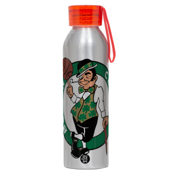 Boston Celtics, Αλουμινένιο Αθλητικό Μπουκάλι 650ml – Ασημί με Κόκκινο Καπάκι και Λουράκι Σιλικόνης