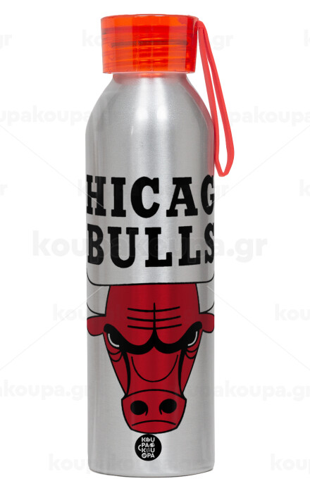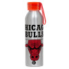 Chicago Bulls, Αλουμινένιο Αθλητικό Μπουκάλι 650ml – Ασημί με Κόκκινο Καπάκι και Λουράκι Σιλικόνης