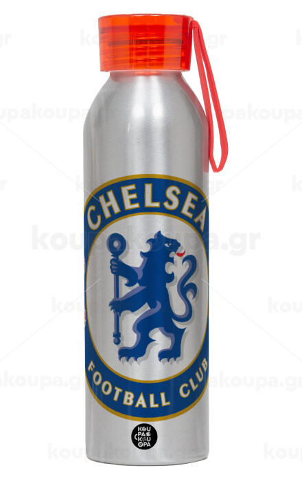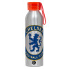 FC Chelsea, Αλουμινένιο Αθλητικό Μπουκάλι 650ml – Ασημί με Κόκκινο Καπάκι και Λουράκι Σιλικόνης