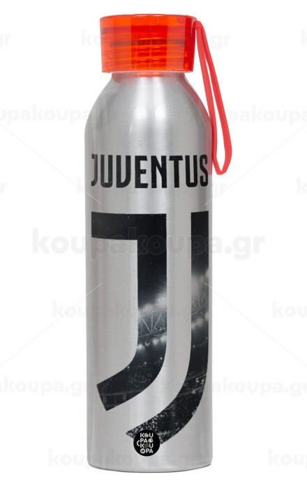 FC Juventus, Αλουμινένιο Αθλητικό Μπουκάλι 650ml – Ασημί με Κόκκινο Καπάκι και Λουράκι Σιλικόνης